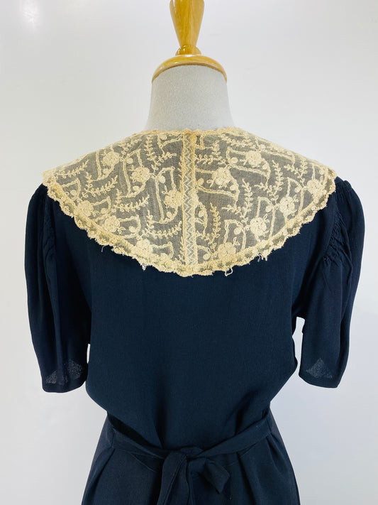 Antique Edwardian Cream Crochet and Tulle Lace Collar