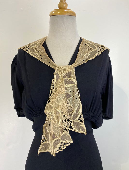 Antique Edwardian Beige Handwork Tape Lace Collar