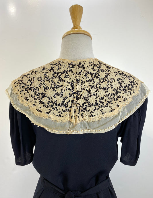 Antique Edwardian Cream Irish Crochet Lace Bertha Collar