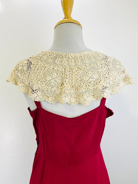 Antique Edwardian Cream Handwork Tape Lace Bertha Collar