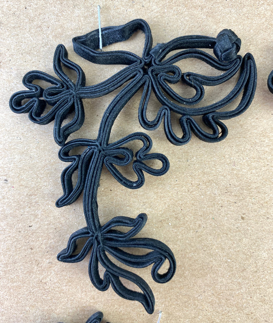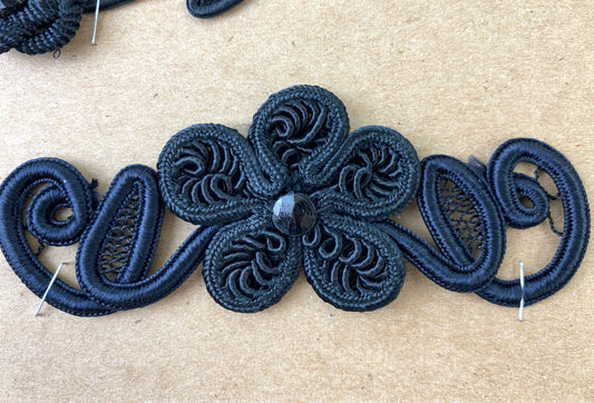 Antique Victorian Black Silk Cording Appliqués, 5 Pieces