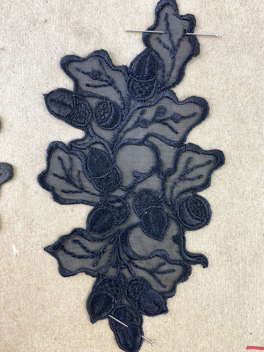 Antique Victorian Black Silk Acorn Appliqués, 3 Pieces