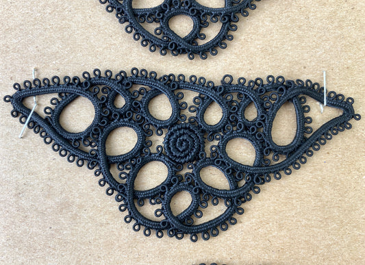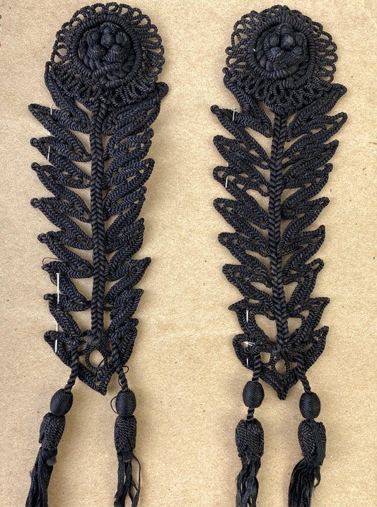 Antique Victorian Black Silk Cord Appliqués, 3 Pieces