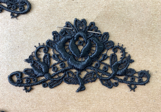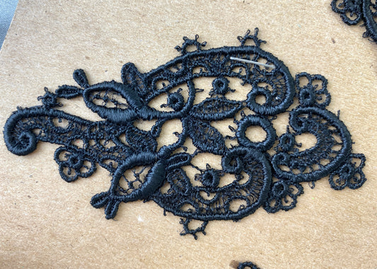 Antique Victorian Black Cotton Lace Appliqués, 29 Pieces