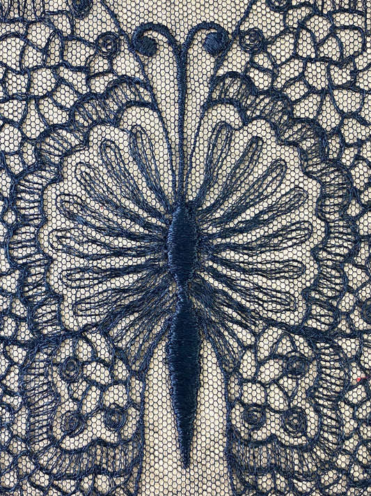 Antique Victorian Black Butterfly Embroidered Tulle Appliqué