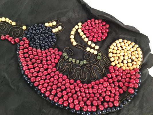 Antique Victorian 1890s Black Beaded Soutache Appliqué Trim/ Patch, 2 Piece
