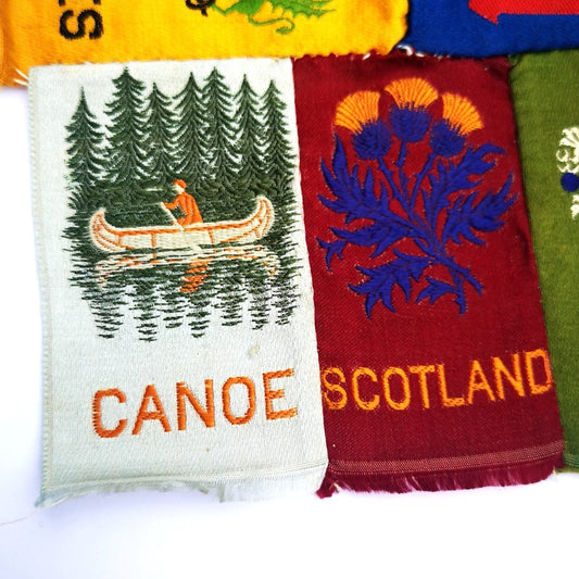 Antique 1900s Collector Tobacco Silks, Country Names, Lot of 8 Patches