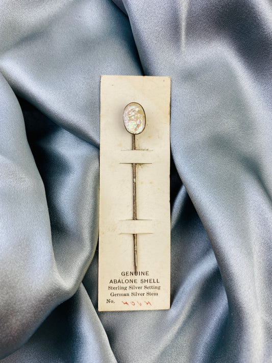 Antique 1910s Small Oval Abalone Shell Silver Stick Hat Pin