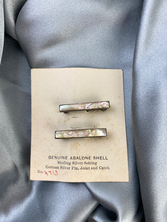 Antique 1910s Silver Angled Rectangular Abalone Shell Lingerie Pins, NOS