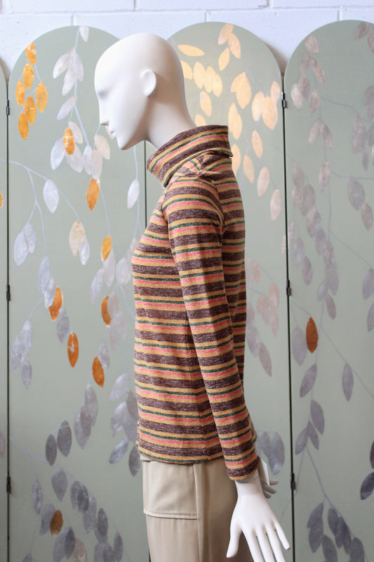 1970s Multicoloured Pink Striped Long Sleeve Turtleneck Top, XS