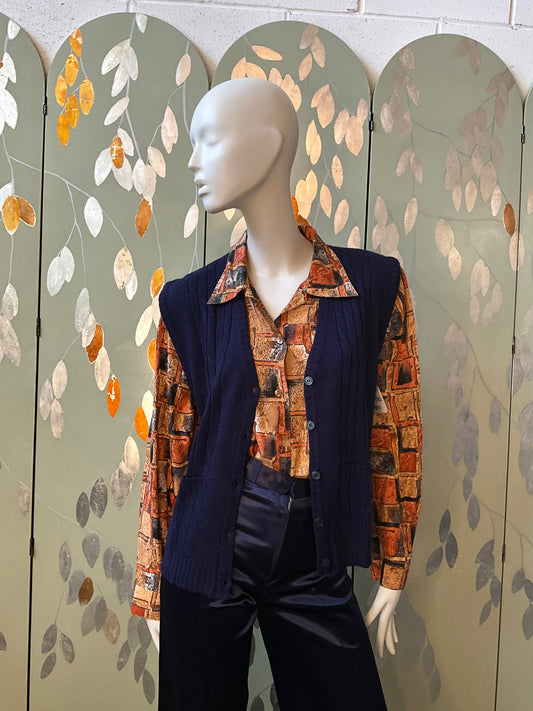 Vintage 1980s Deadstock Navy Blue Knit Waistcoat Sweater Vest Top, Large