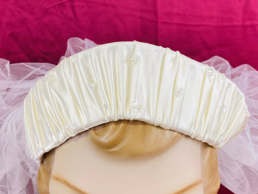 Vintage 80s/ 90s Ivory Satin Halo Headpiece/ Diadem with Tulle Ruffle
