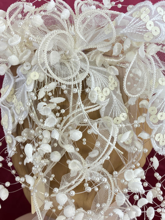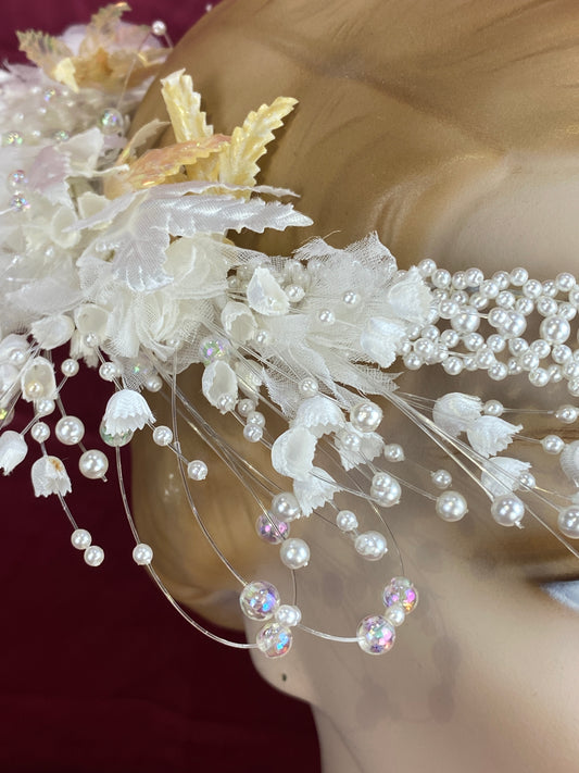 Vintage 80s/90s Pearl Bead & Lace Floral Bridal Headpiece