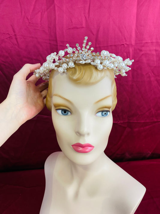 Vintage 80s/90s Crystal and Pearl Bridal Diadem