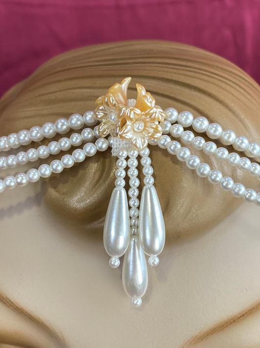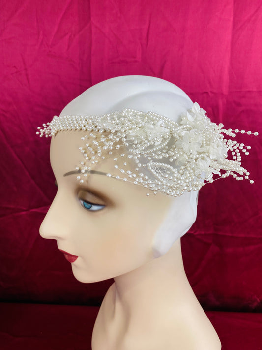 Vintage 80s/90s Bridal Pearl Tassel and Flower Art Deco Circlet Headpiece