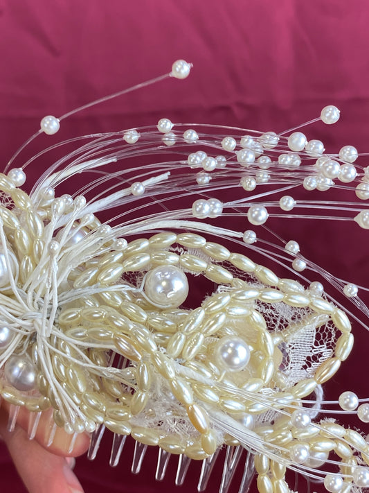 Vintage 80s/90s Pearl & Lace Bridal Hair Comb