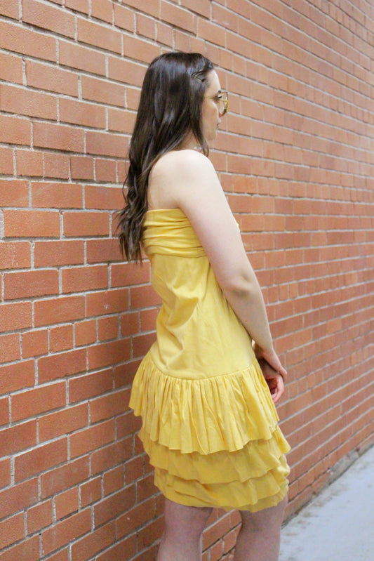Vintage 1980s Yellow Cotton Callaghan by Romeo Gigli Tiered Summer Dress, Small