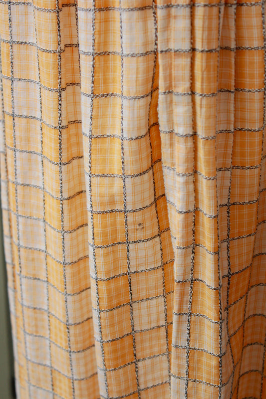 Vintage 1970s Orange Gingham Pinafore Apron with Ruffles, Medium