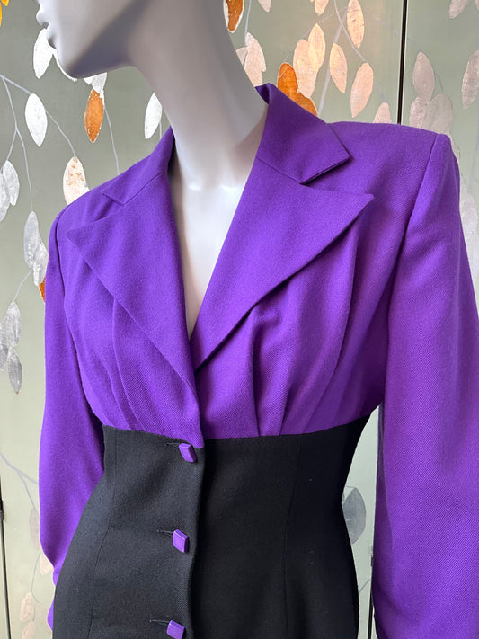 Vintage 1980s Patrick Kelly Purple Black Wool Dress, Medium