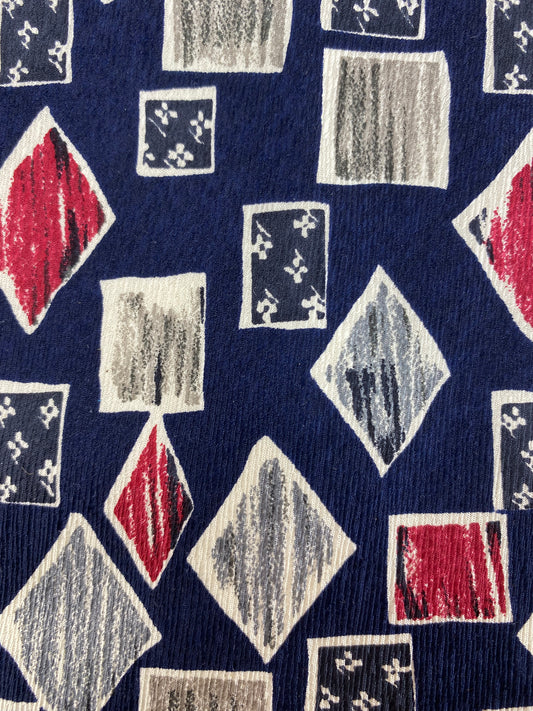 90s Deadstock Silk Necktie, Men's Vintage Navy Tie With Red/ Grey Diamond & Square Pattern, NOS