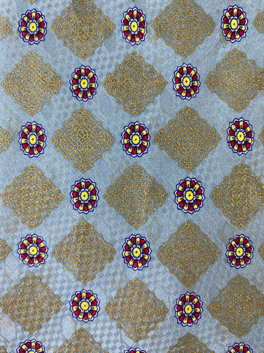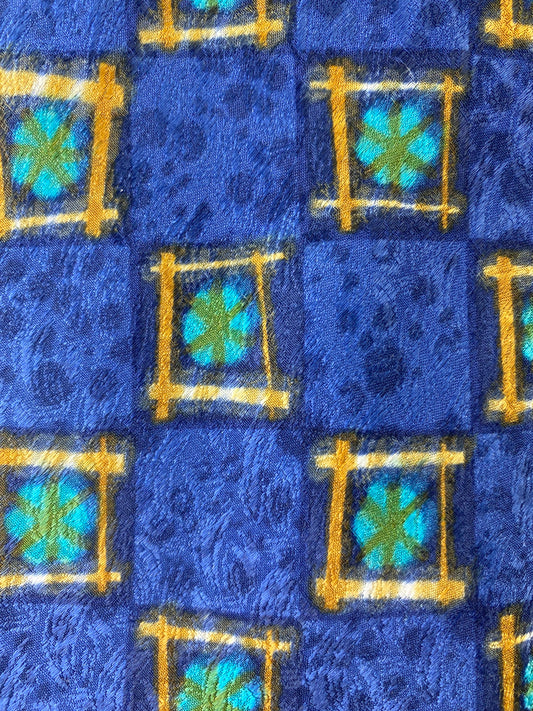 90s Deadstock Silk Necktie, Men's Vintage Blue/ Gold Moroccan Medallion Pattern Tie, NOS