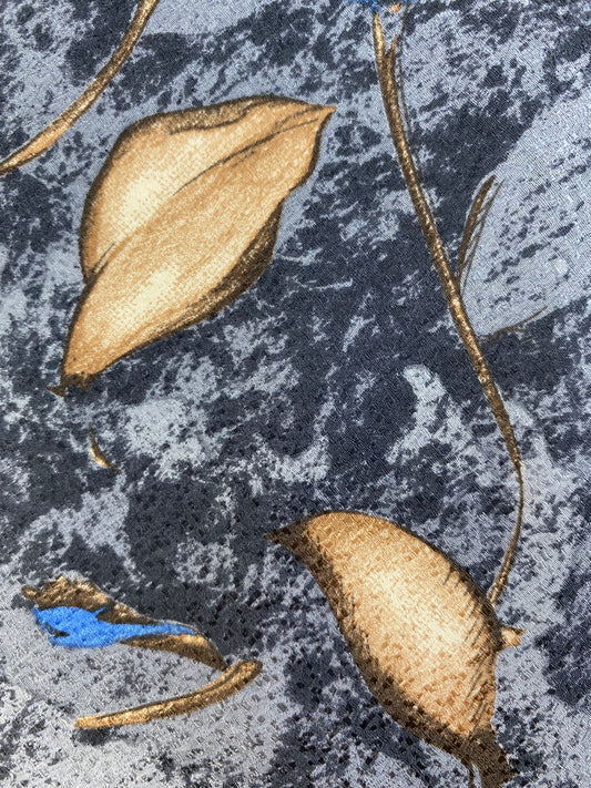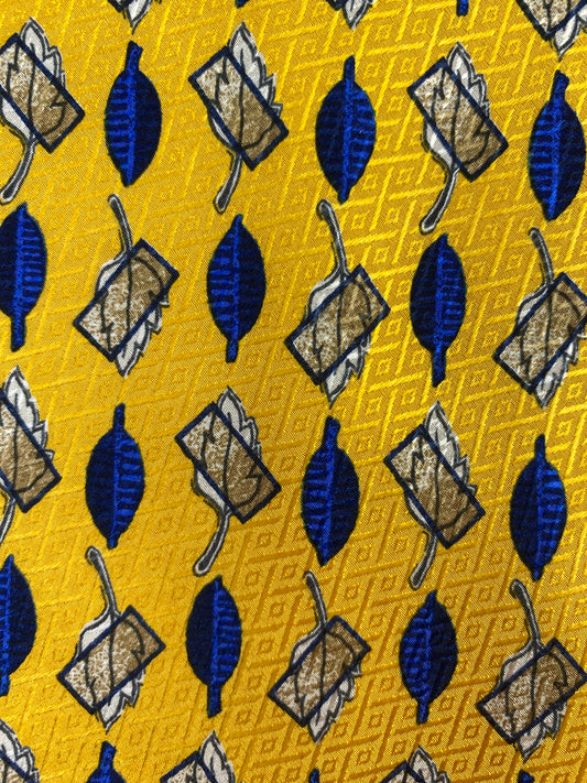 90s Deadstock Silk Necktie, Men's Vintage Gold/ Blue Leaf Pattern Tie, NOS