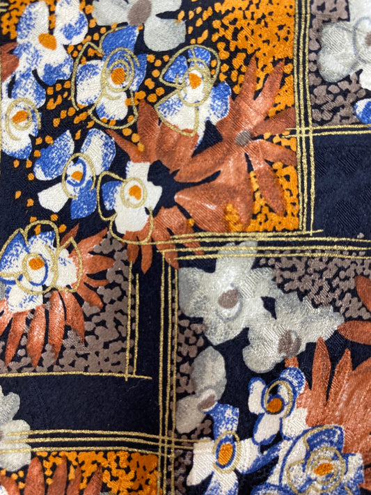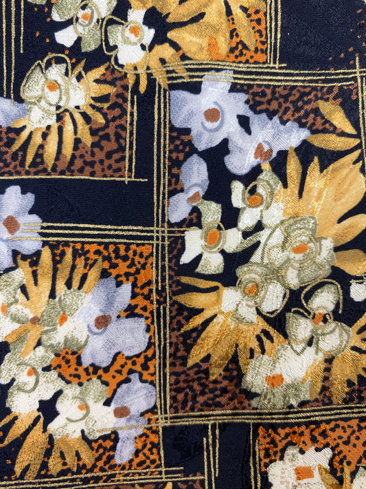 90s Deadstock Silk Necktie, Men's Vintage Gold Blue Floral Pattern Tie, Black Background, NOS