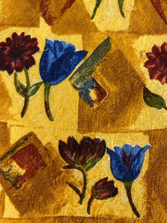 90s Deadstock Silk Necktie, Men's Vintage Gold/ Blue Mid-Century Modern Floral Pattern Tie, NOS