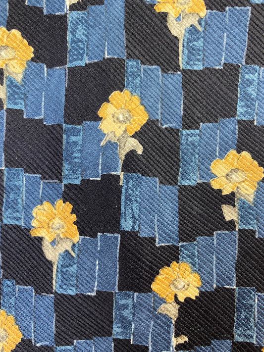 90s Deadstock Silk Necktie, Men's Vintage Blue/Gold Floral Geometric Pattern Tie, NOS