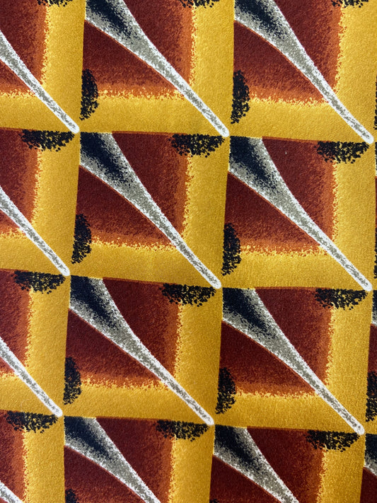 90s Deadstock Silk Necktie, Men's Vintage Gold Rust Geometric Pattern Tie, NOS