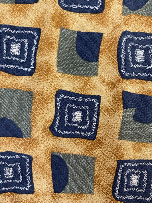 90s Deadstock Silk Necktie, Men's Vintage Gold/Navy/Green Geometric Pattern Tie, NOS