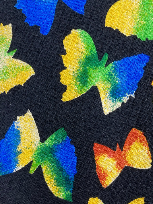 90s Deadstock Silk Necktie, Vintage Black/ Blue/ Yellow Butterfly Pattern Tie, NOS