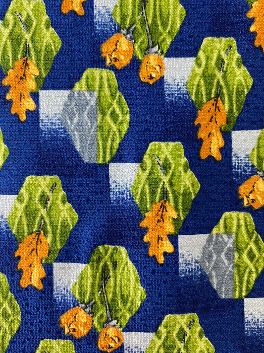 90s Deadstock Silk Necktie, Men's Vintage Blue/ Green/ Yellow Oak Leaf & Rose Pattern Tie, NOS