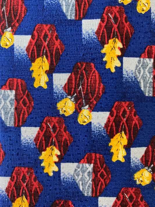 90s Deadstock Silk Necktie, Men's Vintage Blue/ Red/ Yellow Geometric Oak Leaf & Rose Pattern Tie, NOS