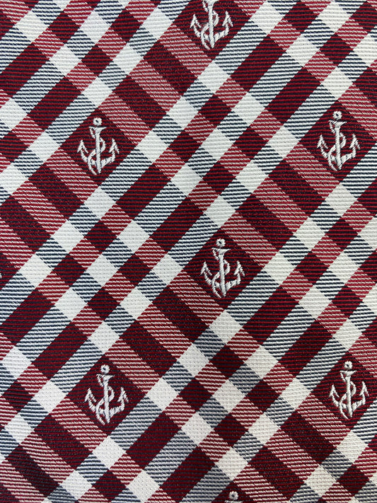 90s Deadstock Silk Necktie, Men's Vintage Wine/ Grey Plaid Anchor Pattern Tie, NOS
