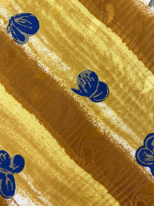 90s Deadstock Silk Necktie, Men's Vintage Gold Diagonal Stripe Blue Butterfly Pattern Tie, NOS