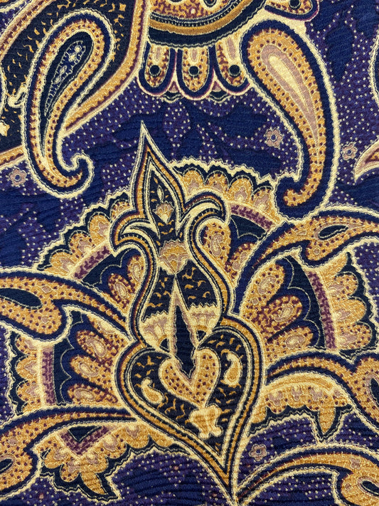90s Deadstock Silk Necktie, Men's Vintage Gold/Purple Paisley Pattern Tie, NOS