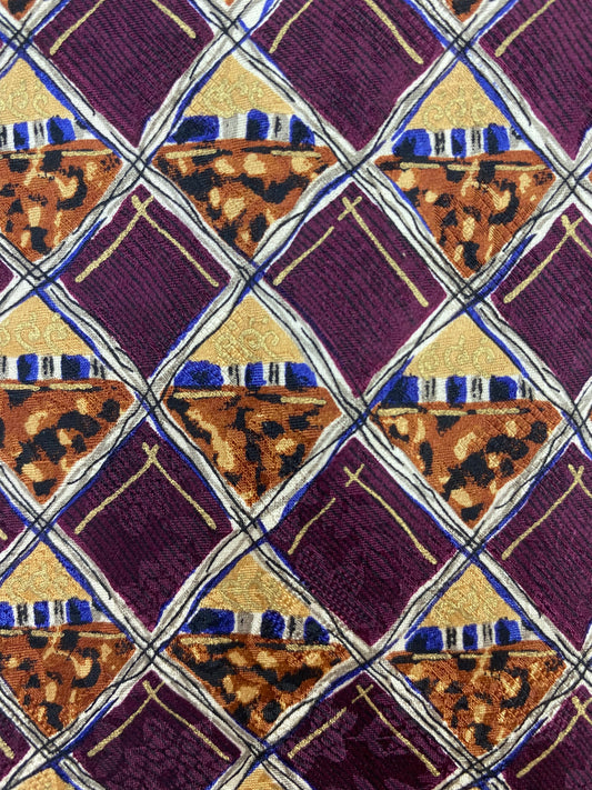 90s Deadstock Silk Necktie, Men's Vintage Purple/ Gold Geometric Pattern Tie, NOS