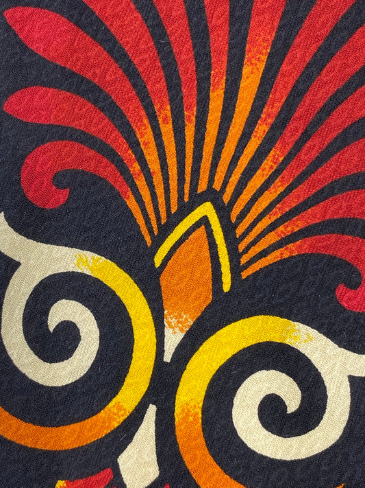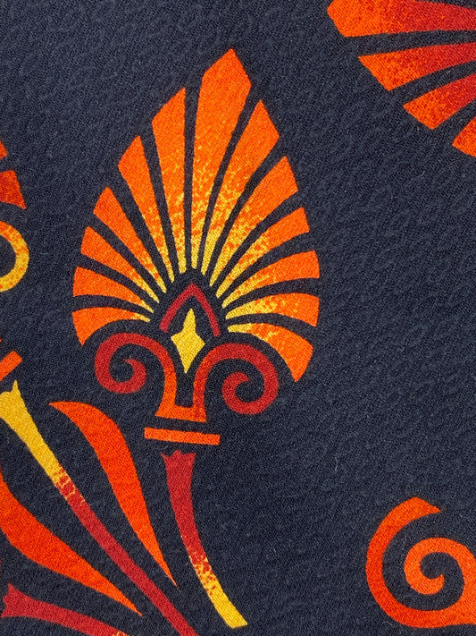 90s Deadstock Silk Necktie, Men's Vintage Orange/ Red Polynesian Tiki Pattern Tie, NOS