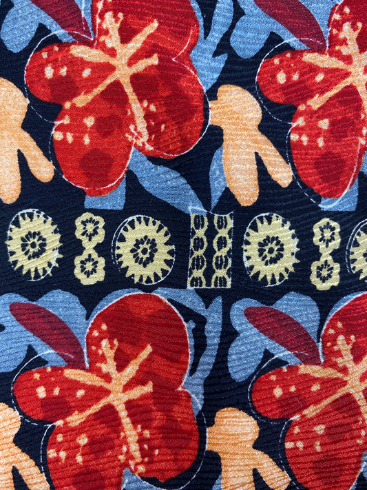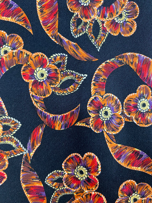 90s Deadstock Silk Necktie, Men's Vintage Black/ Orange/ Red Floral Ribbon Pattern Tie, NOS