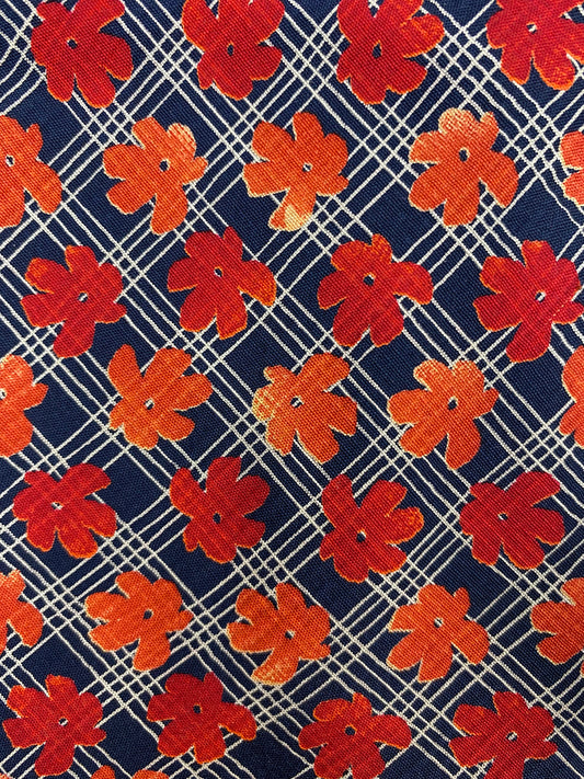 90s Deadstock Silk Necktie, Men's Vintage Navy/ Orange/ Red Floral Pattern Tie, NOS