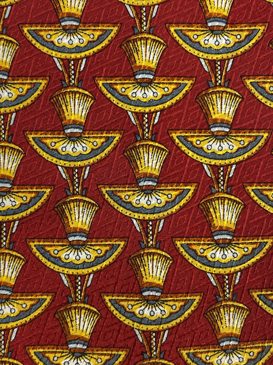 90s Deadstock Silk Necktie, Men's Vintage Red & Yellow Egyptian Art Deco Pattern Tie, NOS