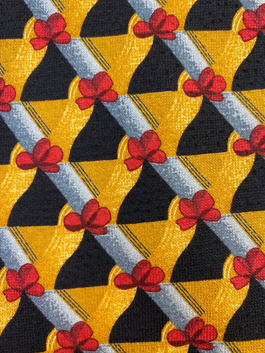 90s Deadstock Silk Necktie, Men's Vintage Gold Red Grey Lattice Pattern Tie, NOS