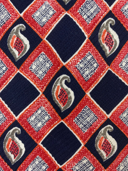 90s Deadstock Silk Necktie, Men's Vintage Red/Blue Check Boteh Pattern Tie, NOS