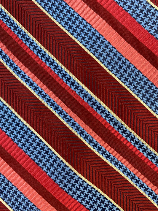 90s Deadstock Silk Necktie, Men's Vintage Red/ Blue Diagonal Stripe Pattern Tie, NOS