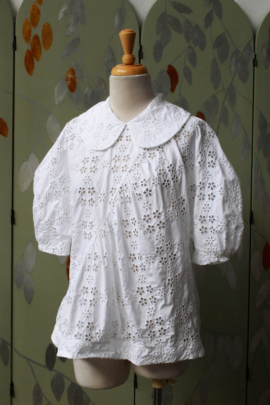Simone Rocha Eyelet Floral Lace Blouse with Peter Pan Collar, Medium