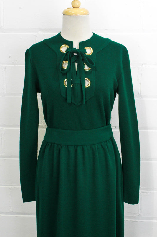 Vintage 1970s Arbe Green Knit Skirt and Top Set, Medium