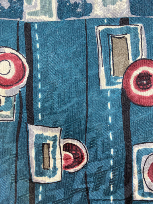 90s Deadstock Silk Necktie, Men's Vintage Teal/ Wine Geo-Abstract Pattern Tie, NOS