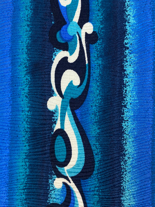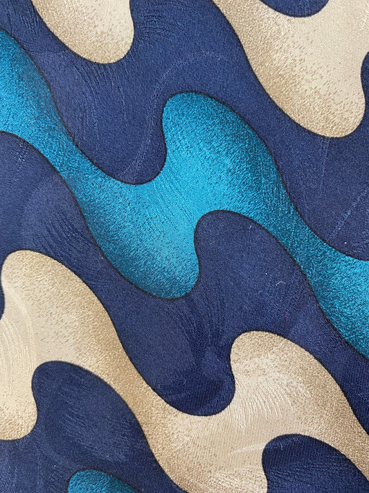 90s Deadstock Silk Necktie, Men's Vintage Teal Blue Abstract Wave Pattern Tie, NOS