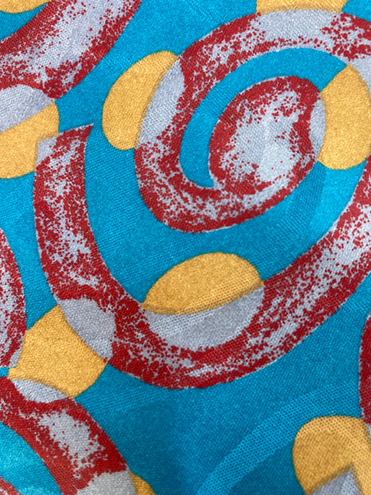 90s Deadstock Necktie, Men's Vintage Teal/ Red/ Yellow Swirl Dot Pattern Tie, NOS